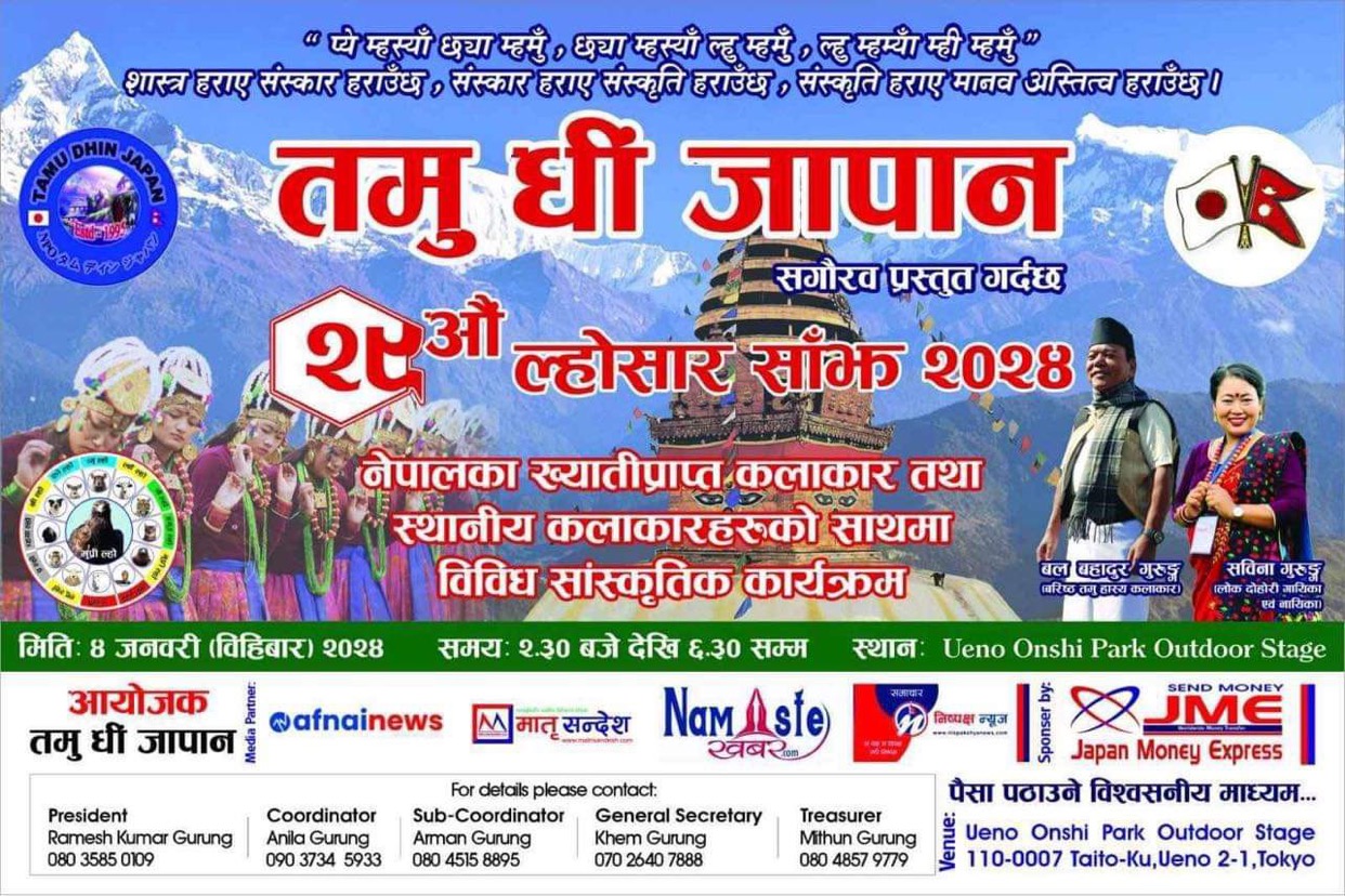तमु धीं जापानको २९ औं ल्होसार साँझ जनवरी ४ मा हुने ।